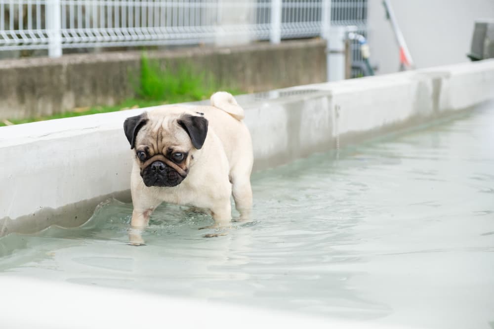 初めてチャレンジするワンちゃんも入りやすいプールです。